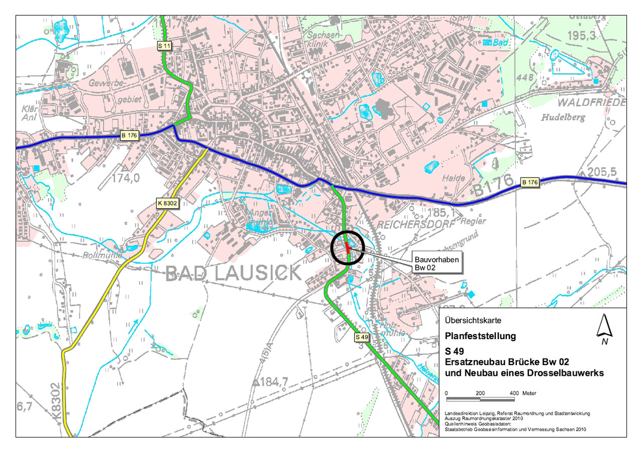 Auf Antrag der sächsischen Straßenbauverwaltung hat die Landesdirektion Leipzig einen Planfeststellungsbeschluss für den Neubau einer Brücke über den Heinersdorfer Bach im Zuge der Staatsstraße 49 (Reichersdorfer Straße) in Bad Lausick erlassen. Damit besteht für das Vorhaben Baurecht.