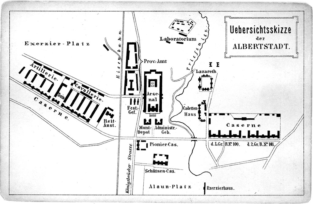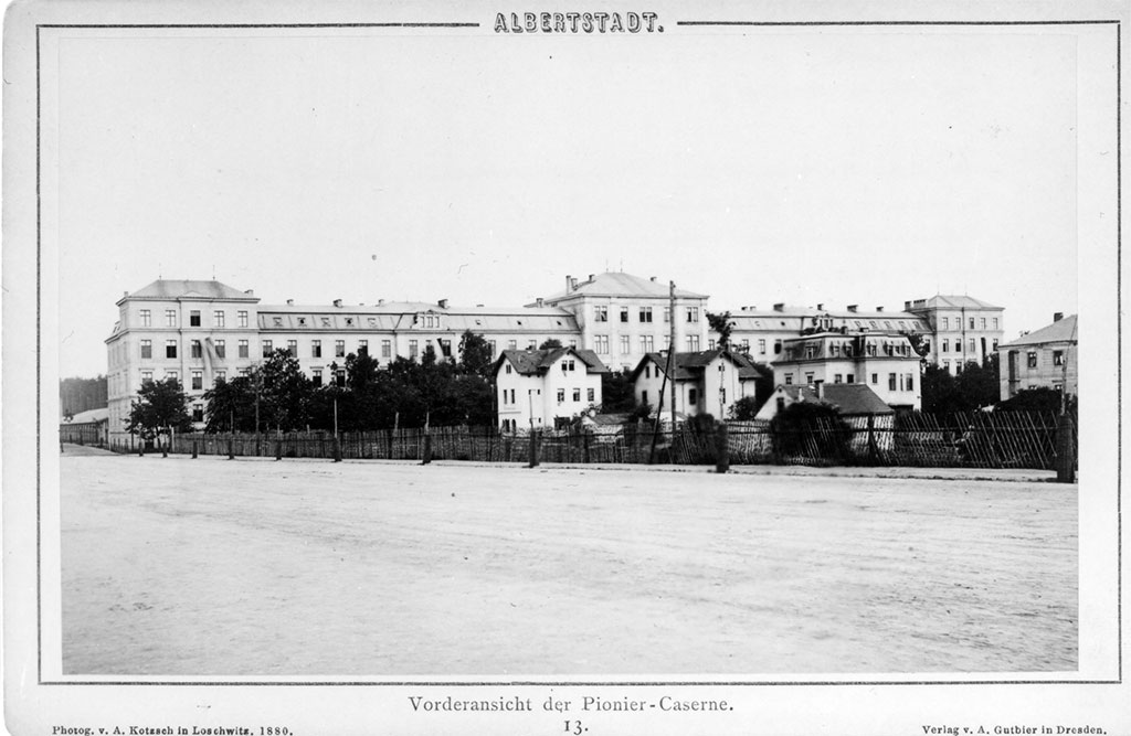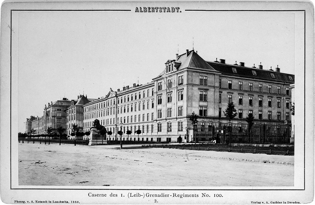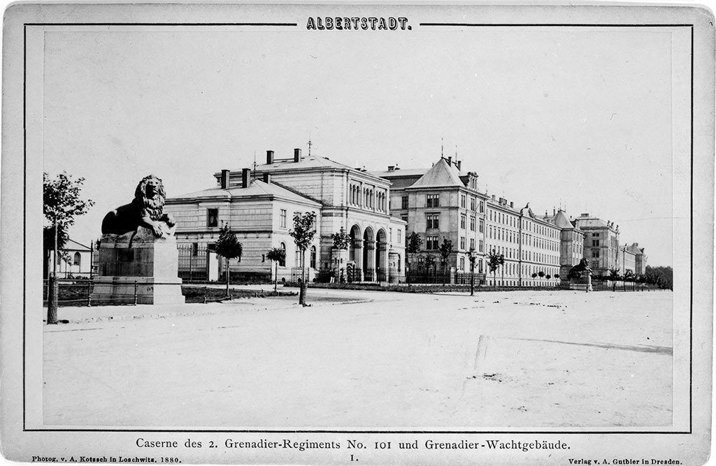Anfangs zählte die Kasernenstadt 12 000 und später 20 000 Mann. Die beiden Grenadierkasernen auf der Stauffenbergallee 2, eine davon für das 1. Königlich-Sächsische Leibgrenadier-Regiment 100, wurden 1877 eingeweiht. Zu ihnen führte die drei Kilometer lange, bis 30 Meter breite Heerstraße zwischen Radeburger und Radeberger Straße, die auf drei 23,4 Meter hohen Brückenbögen über den Prießnitzgrund führte.