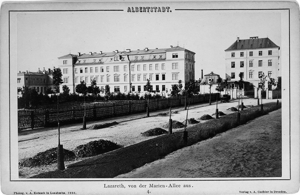 Nördlich davon stand an der heutigen Marienallee das zweietagige Garnisons-Lazarett mit 425 Betten und der Administratur. Dort erinnert ein Gedenkstein an den Hygieniker und Militärarzt Wilhelm August Roth (1833 - 1892) mit einem Relief von Heinrich Epler.