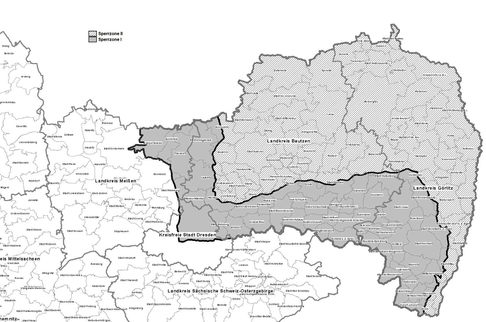 - Gemeinde Stadt Bautzen, sofern nicht bereits Teil der Sperrzone II,