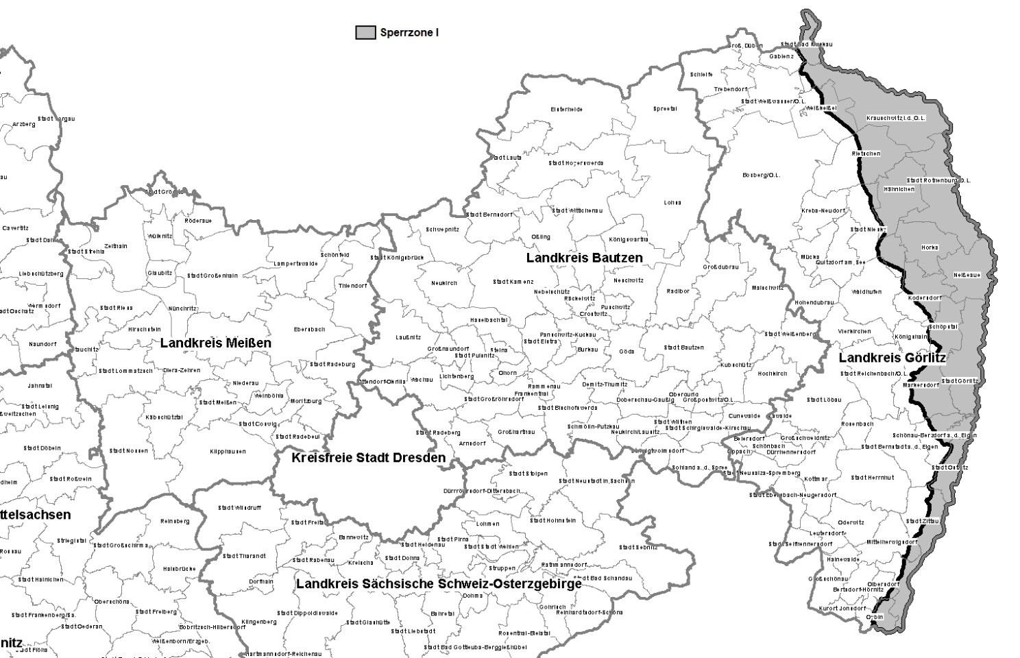 a. Die Sperrzone I umfasst im Landkreis Görlitz: