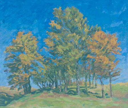 Jochen Fiedler ist ein Künstler, der sich offen zur Tradition bekennt - eine im Zeitalter von Innovations- und Avantgardedenken gar nicht so häufig anzutreffende Haltung. Er kreiert "klassische" Landschaften von einer zeitlosen Schönheit. Seine Werke zeugen von Ursprünglichkeit und Harmonie, sie sind malerische Entwürfe einer intakten Welt, in der Mensch und Natur (noch) eine Einheit bilden.
