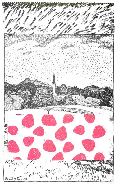Das Leben in der Rose sucht sich durchaus verschiedene, widersprüchliche Ausdrucksformen. Bunte Vögel, übereinander auf langen Tapetenrollen hockend, haben darin einen lehrbuchhaften Platz, nicht anders als schwarzglänzende Gebilde, aus Schlangenlinien und knotenhaften Verdichtungen gezogen, ein wenig animalisch und hin und wieder floral.