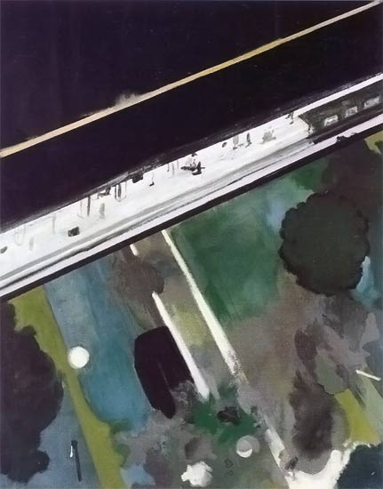 Viele Bilder Stangls sind endlosen Autofahrten durch brandenburgische Regenlandschaften und dem Berliner Innenstadtdschungel zu verdanken. Stangl sieht Städte und Landschaften wie durch einen Sprühnebel. Was die Bildsprache mitteilt, wirkt wie eine künstlerische Verabredung. Ein feinmaschiges Netz aus Lichtpunkten, Streifen, minimalistisch rasterhaften Verunreinigungen des Harmonischen wird über den Bildgrund gebreitet. Statt der zeitlos-selbstverständlichen Ruhe der Naturdinge schwimmen häufig Wortfetzen über die Leinwand, mit denen Stangl versucht Fuß zu fassen in einer Welt, die sich noch dem Abschildern entzieht.