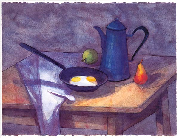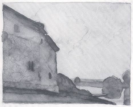 Klaus Drechsler lockt das offene Land mit von Witterung und Leben gezeichneten Gehöften und Gesichtern, die Spuren von Mühsal und Vernutzung; aber auch die Formung durch Ackern oder Steinbruch, mit der rohe Natur in Menschenwelt verwandelt wurde. Auf seinen Bildern ruhen schwer die Esser vor ihrem Napf. Bis in die Stilleben hält er eine stimmige Welt des einfachen Lebens fest: in der Eierpfanne, in den bäuerischen Früchten, den Broten, den Hammelschädeln. Junger Akt und schwerleibige Schwangere, heiter Geschmückte im Hut oder in Kostümierung und verschmitzte Greisin tauchen auf aus totalen, oft satten Dunkelheiten in kostbaren Tönungen oder gar edelsteinhaftem Leuchten. Goldene Haut beglückt inmitten gebrochener Farben.