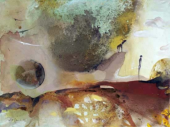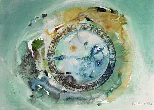 Wieland Richter ist ein ausgesprochen poetischer Zeichner, der Farben mit Linien sättigt. Er spielt mit den künstlerischen Mitteln wie ein Komponist bei der Orchestrierung seiner Sinfonie, die verschiedene Instrumente behandelt. Nach seinem Ermessen mäßigt er den Rhythmus und den Takt, stimmt ein Element herab oder steigert es, moduliert eine Nuance, ganz der Freude hingegeben, Harmonien der Stille, der Heiterkeit und Ekstase zu entwickeln. Die Farbe als Schwingung spiegelt die innere Kraft, die Linie ihre feinnervige Sensibilität wider. Stille ist mit einer Bewegung gefüllt, die man nicht hört, von der man doch weiß, dass sie abläuft, einfach da ist: das tausendnamige, sich unaufhörlich wälzende, drehende, aufsteigende, zurückfallende, sich kreuzende Leben.