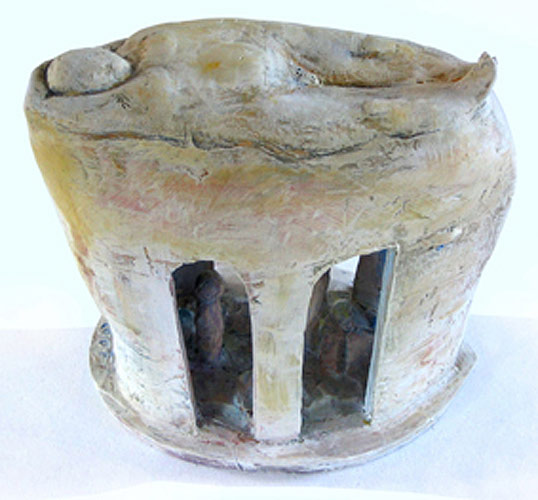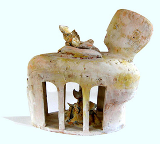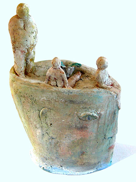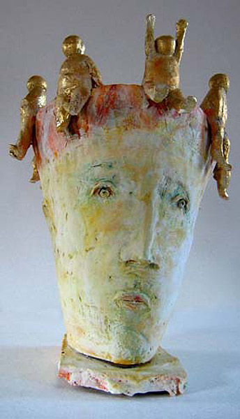 „Skulpturen im Kopf“ vereint Arbeiten Jürgen Cominottos aus den Jahren ab 2005. Es handelt sich um Plastiken, die aus Terrakotta aufgebaut, gebrannt, zum Teil montiert und bemalt wurden. Immer bildet ein Kopf den Kern der Skulptur, auf oder in dem sich dann Figurales zeigt - sitzend, stehend, liegend. „Skulpturen im Kopf“ allerdings meint nicht nur das sichtbare Ergebnis der bildhauerischen Arbeit, sondern auch den vorausgegangenen Schaffensprozess.