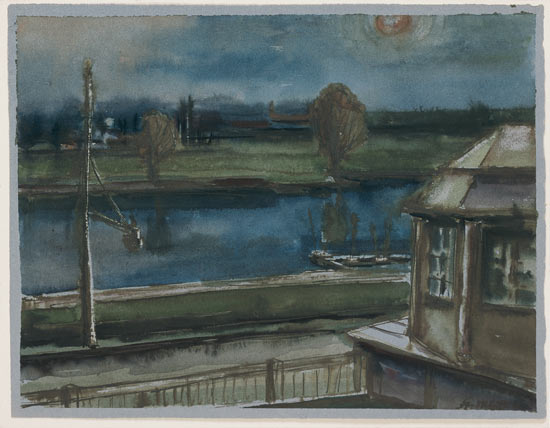 Bevor Gerhard Stengel jedoch seinem Dresdner Domizil ein ständiges Refugium an der See zur Seite stellen konnte, stand seine Staffelei an vielen Orten, an die ihn der Zufall führte. Schon 1946 malte er am Alten Strom in Warnemünde, da waren seine Farben noch stumpf und glasig, und mehr zeichnend als malend suchte er die Fischkutter am Kai als Charakteristika des Nordens einzufangen.