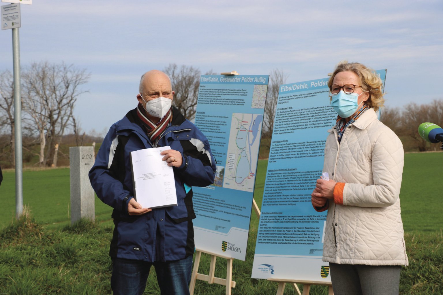 Es war klar, dass der Hochwasserschutz hier verbessert werden muss. Die Landestalsperrenverwaltung beantragt 2014 bei der Landesdirektion die Planfeststellung für ein umfangreiches Vorhaben mit dem Titel „Errichtung eines gesteuerten Flutungspolders bei Außig an der Elbe“. Damit sind im Grunde zwei Projekte in einem vereint: Für den überörtlichen Hochwasserschutz soll zwischen Elbe und Außig ein steuerbarer Polder errichtet werden. Der wird künftige Hochwasserwellen der Elbe abmildern und so die Unterlieger am Strom schützen. Für den örtlichen Hochwasserschutz aber ist die Errichtung eines Absperrdeiches mit Absperrbauwerk vorgesehen, der die angrenzenden Orte vor den Folgen eines Rückstaus der Dahle absichern soll.