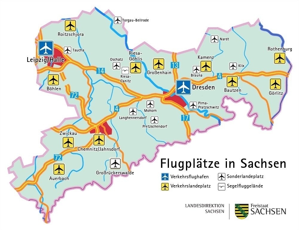 In Sachsen gibt es folgende Flugplätze (ohne Hubschrauberflugplätze):