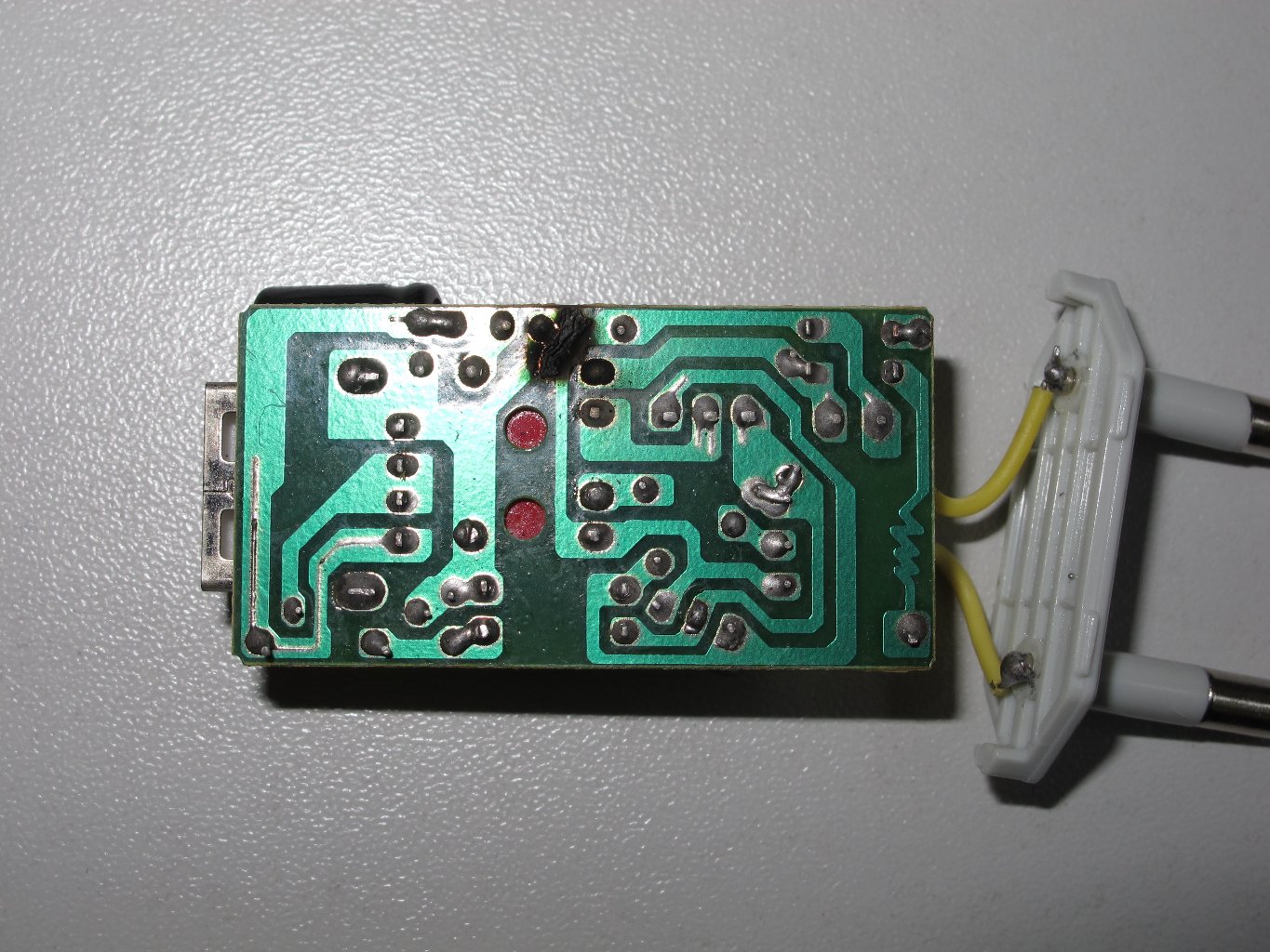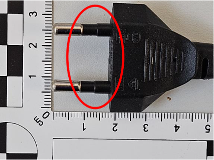 Die Isolierung des Netzsteckers (schwarze Hülsen auf Pins) ist zu kurz.